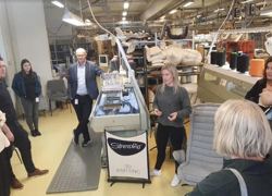Dette gjev store muligheiter innan skreddersaum, og verker veldig lovande i forhold til klimautfordringar. Smarte måtar å demontere stolrygg og sete for å skifte trekk var innarbeid i fleire modellar. Laila Helen Grebstad presenterte og gav oss kyndig og lettforståeleg informasjon.