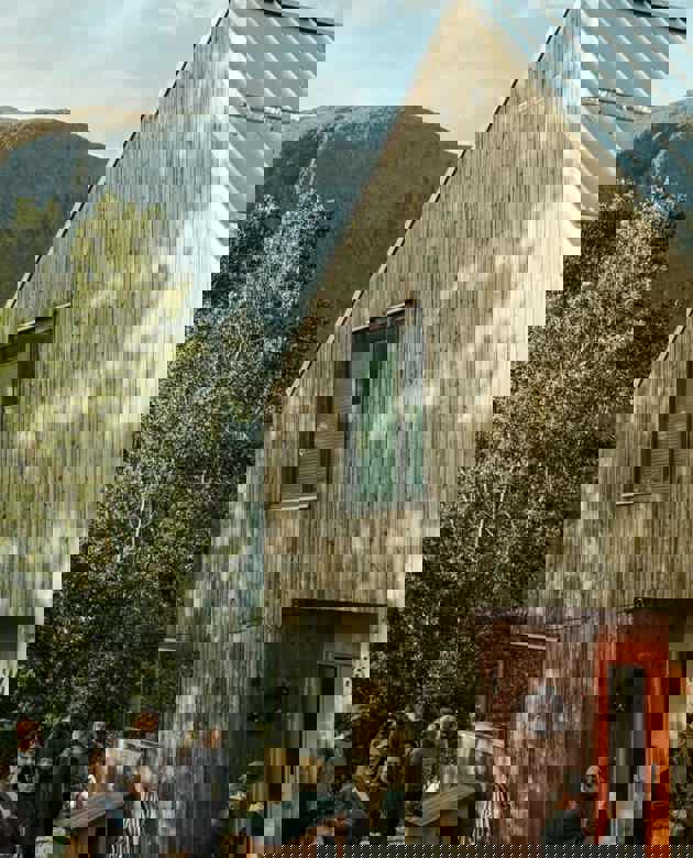 Vi avsluttet med Reiulf Ramstads minimalistiske Bratte Boliger med konsekvente treinteriører og uvirkelig utsikt mot Romsdalshorn.