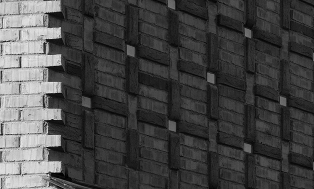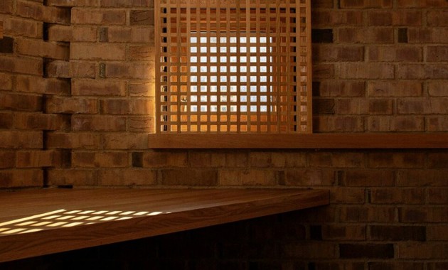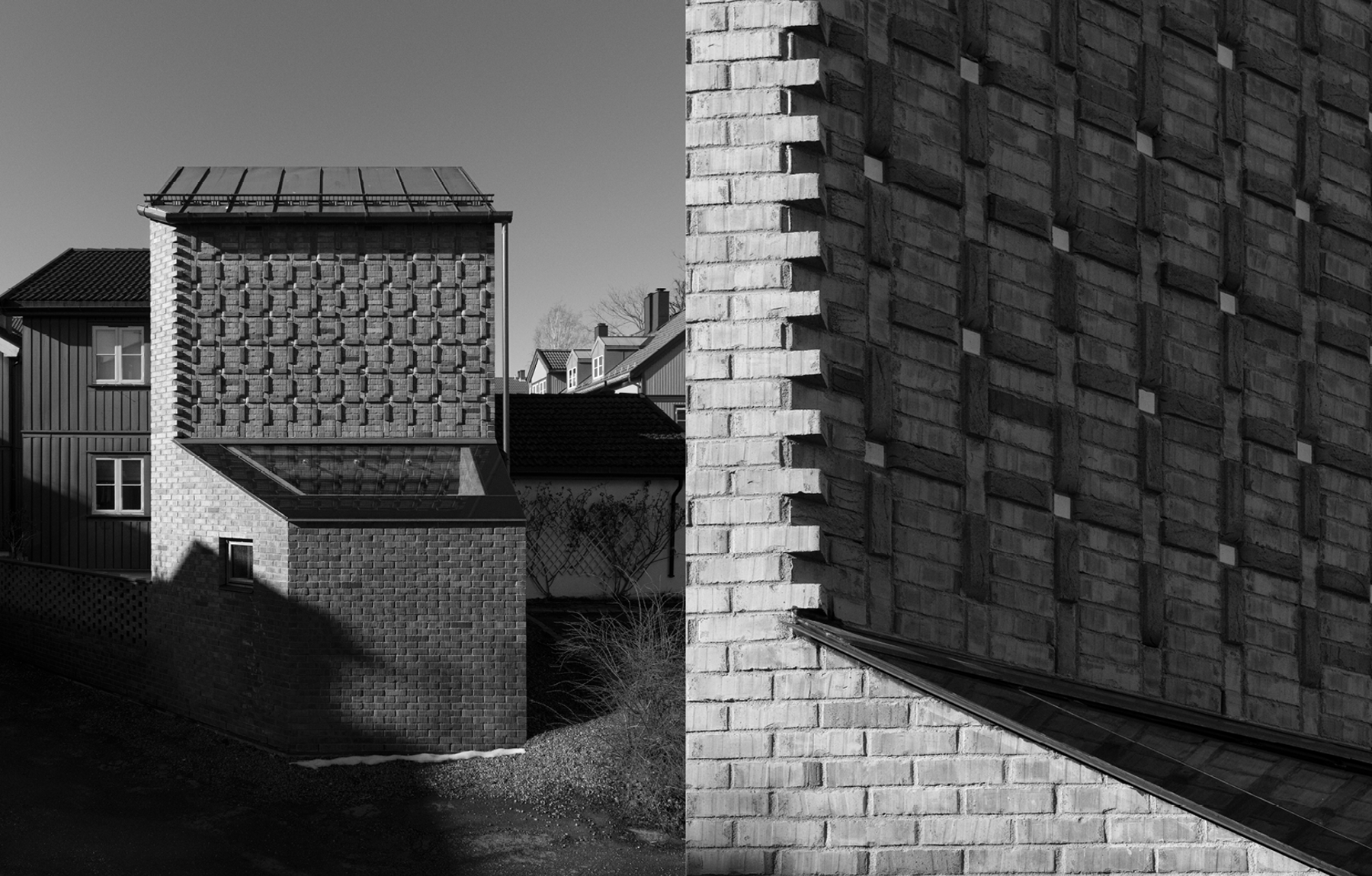 Materialbruken er tydelig og robust. Tilbygget er oppført med skallmurvegger i tegl, lagt med innsiden ut, og på østfasaden er det integrert en teglutsmykning som løfter frem murerhåndverket. Detaljeringen er gjennomgående nøye bearbeidet og lar materialenes struktur og håndverk tre tydelig frem, både visuelt og taktilt.