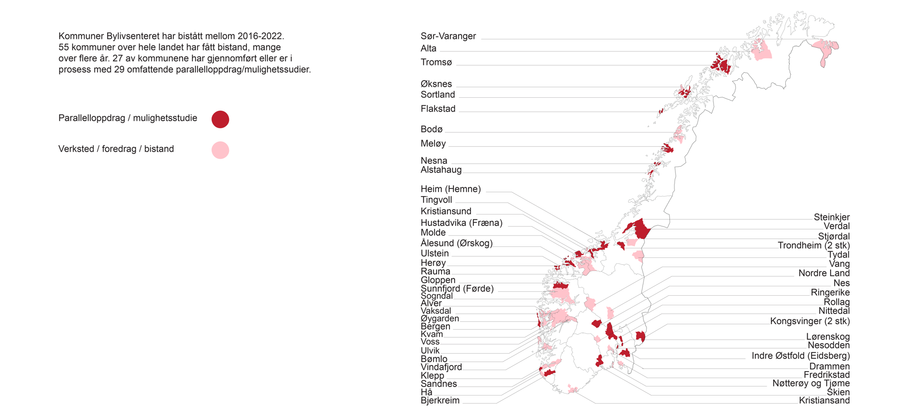 Her finner du en oversikt over stedsutviklingsprosjekter som Bylivsenteret er eller har vært involvert i.