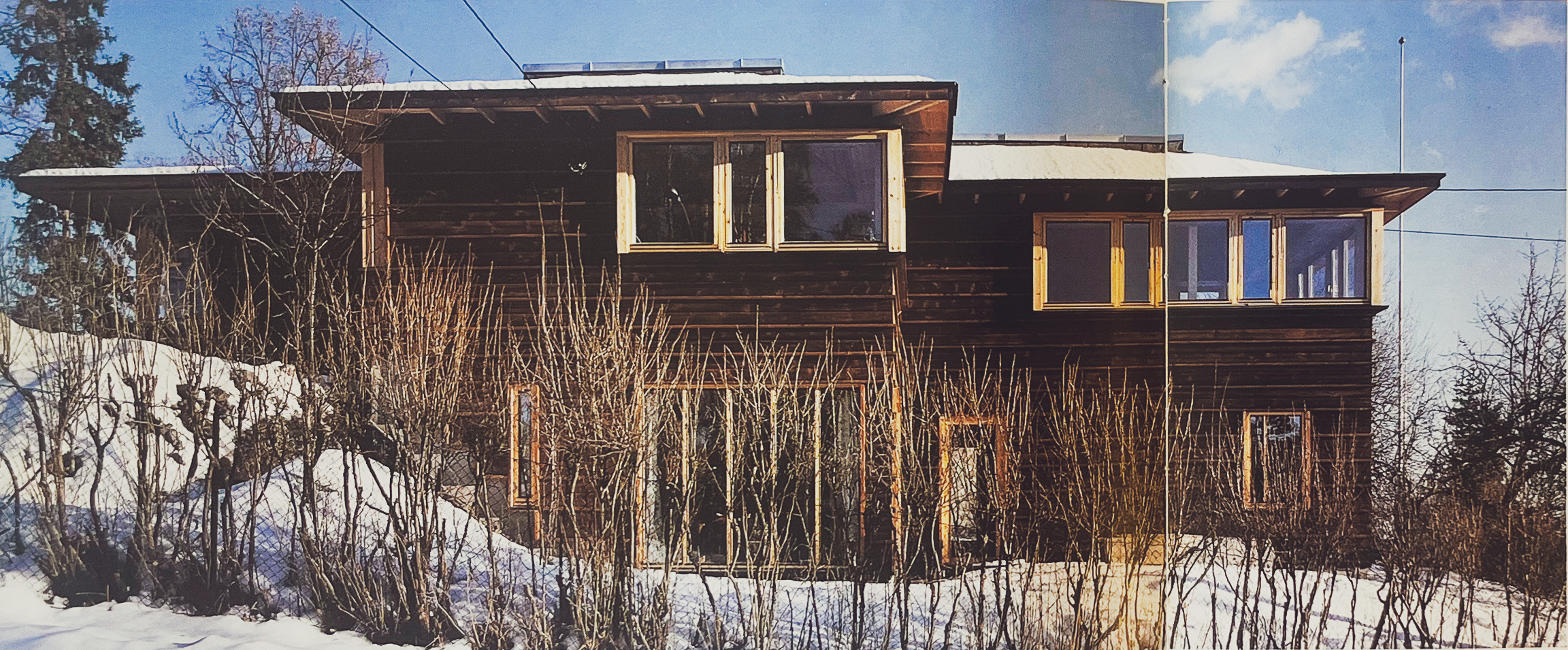 På en bratt tomt i Tåsen-området i Oslo ligger Villa Skofterød/Skard — et hus som viderefører modernismens prinsipper med røtter i norsk byggetradisjon. Tegnet av Henrik Poppe, 4B Arkitekter og oppført i 1995 for Anne-Grete Skofterød og Håkon Skard, er dette et hus der treverket er brukt konsekvent — i konstruksjon, kledning og interiør. Den mørke, tjærede kledningen og det valmede taket med utkragede takflater gir bygget et lavmælt, men tydelig volum i landskapet.