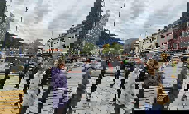 Tidligere rådmann Oddbjørn Vassli ledet byvandring med fokus på god og forbausende raskt vedtatt områdeplan samt verdien av ideer, ildsjeler og lokal kapital i et sentrum tidligere preget av stagnasjon.