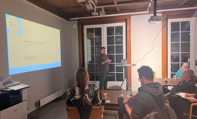Det ble en interessant og idérik kveld i Hagestuen PBE og OAF inviterte til et samarbeidsarrangement hvor fremtidens byutvikling stod på agendaen. Kvelden ble startet av PBE, hvor Hans Martin Aambø ga en introduksjon og presenterte hvordan etaten arbeider. Deretter var det invitert fem innledere, alle med forskjellige fagfelt og perspektiv, som skulle legge føringer for resten av kvelden.