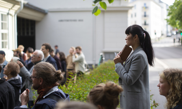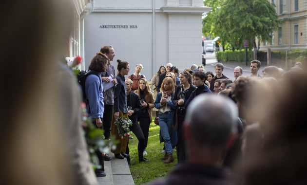 Hagestuen var fylt da OAF inviterte unge arkitekter til å bidra til utstillingen "Nye stemmer". Årets tema var "nye former".