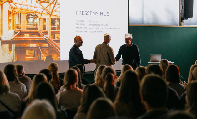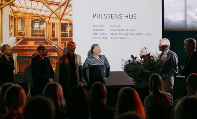 Sundts komité ved Erik Langdalen annonserte at Sundts premie går til Atelier Oslo og KIMA arkitektur for transformasjonsprosjektet Pressens hus.