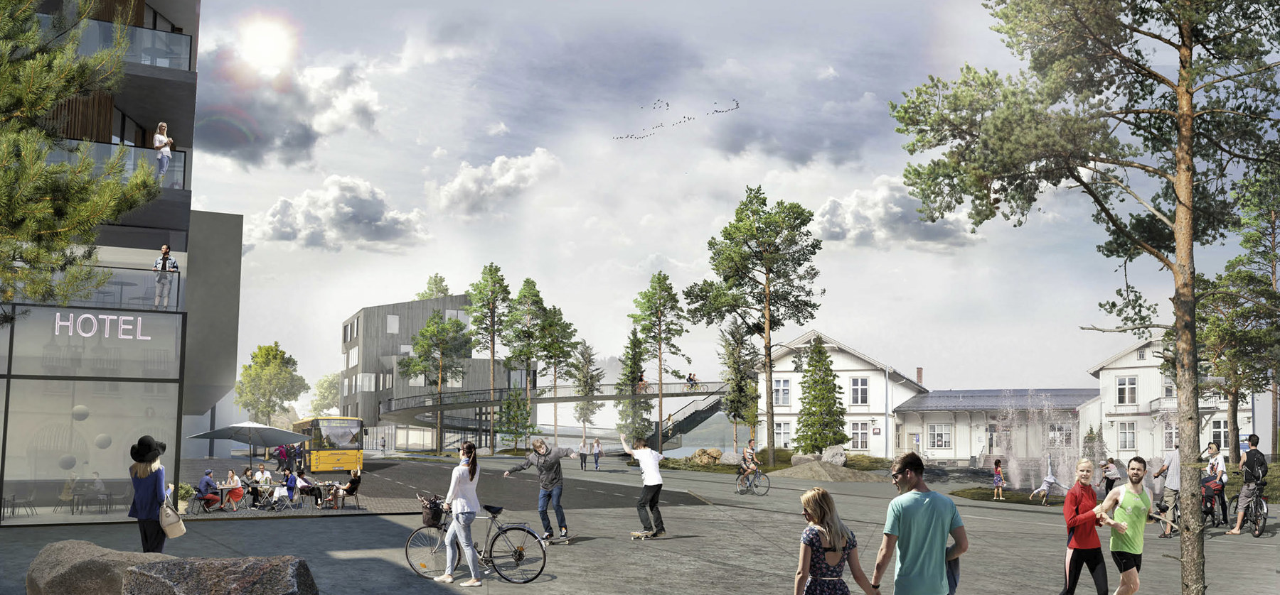 Det er også planer om å bygge en ny sykkel og fotgjengerbru som skal knytte stasjonssida tett på skole og kunnskapsmiljøet på andre siden av elva.