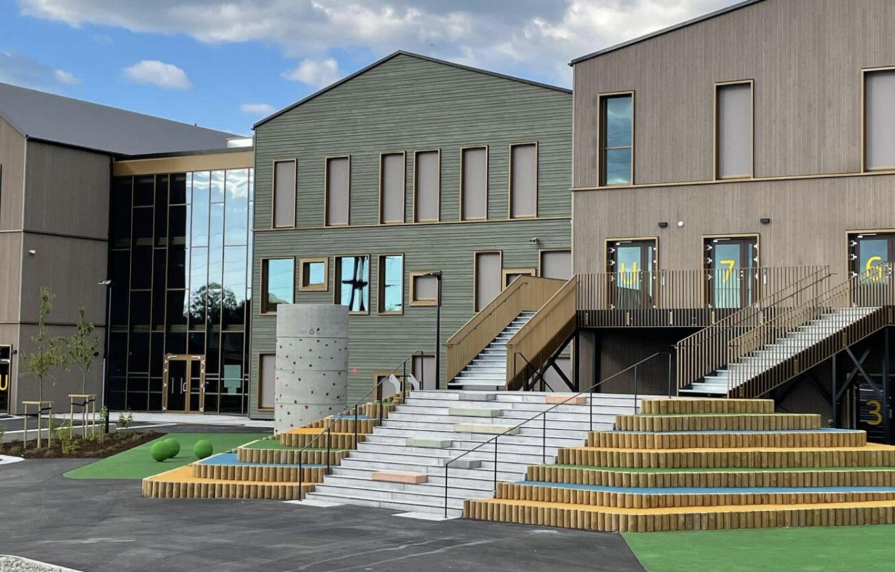 KF skolen har nettopp flyttet inn i nye lokaler på Tjensvoll, ved Tjensvoll kirke. Link har stått for prosjektering av bygget, interiøret og landskapet. Arkitekt, landskapsarkitekt og interiørarkitekt viser rundt på den splitter nye skolen