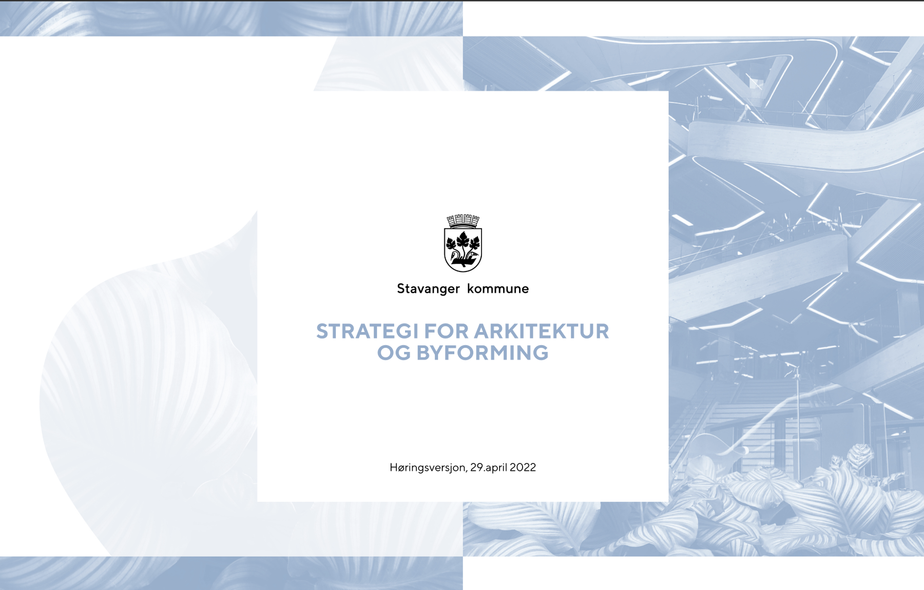 Stavanger kommune har utarbeidet et høringsutkast til en ny strategi for arkitektur og byforming. Dokumentet inngår som et vedlegg i Kommuneplanens Arealdel (KPA) 2023-2040 for Stavanger kommune som kommunen etter planen skal legge ut til 1.gangs behandling, høring og offentlig ettersyn i løpet av mai 2022.